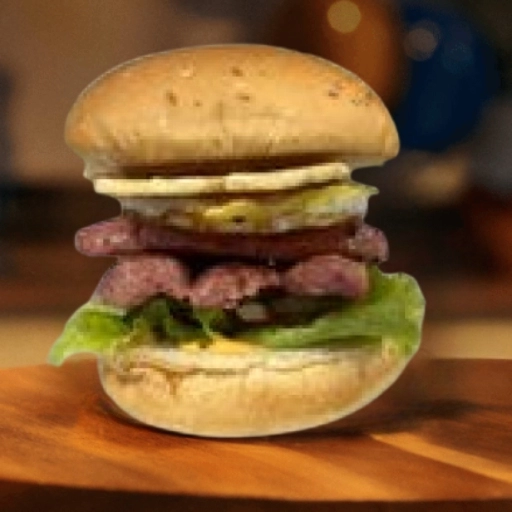 Pão, 2 carnes de hambúrguer 56g, 2 fatias de presunto, 2 fatias de queijo, 2 ovos, bacon, batata palha e salada
